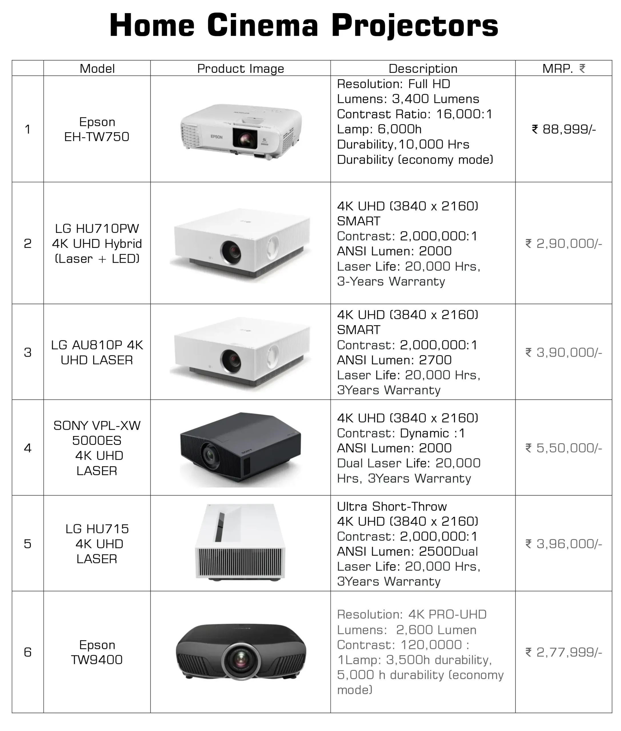 Home/ 4K Home Cinema Projectors – Contact for Best Price